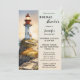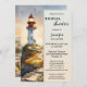 Kusten inbjudningskort för möhippan med en vattenfärgsmålning av ett fyr vid solnedgång. På baksidan är en (valfri) enkel att anpassa QR-kodmallen. Vacker för ett planerat destinationsbröllop, nautiskt bröllop eller ett strandbröllop.