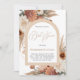 Inbjudningskort för möhippan har en mjuk, romantisk palett med blommigtar i muterad persika, elfenben och varma bruna toner som bildar en mittbåge. Layouten är ren och elegant, med en blandning av typsnitt som tillför synligt intresse: ett blomstrande, kursivt skript belyser evenemangets högtidliga karaktär, medan ett förfinat serif-teckensnitt förmedlar honungens namn med ära. Stöddetaljerna ställs in i ett skarpt, modernt sans serif, som garanterar läsbarhet och balans. Den övergripande utformningen känner sig tidlös och välkomnande, perfekt för en hjärtlig samling. Anpassa med egen information - det finns mer information på baksidan av kortet