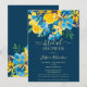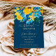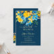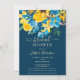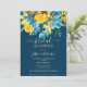 En solblomma av elegant, vår och sommar-gult, blått ro och grönt löv mörkar vattenfärgen blommigt möhippa med och elegant med ett penselteckensnitt på redigerbara blå bakgrund. Perfekt för en snyggt brud att vara firande!