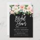 Elegant vattenfärgsblommor och botaniskt grenar i trendig skuggor av vitt, rosa och grönt, inbjudningskort för möhippan. Kortet har solida svarta bakgrunder i färg och vit elegant.