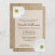 Ett land-temat inbjudningskort för möhippan med knäckta och vita daisy. Anpassa enkelt för evenemanget. DESIGNORERNA ÄR FLATTRYCKTA GRAFIK - INTE FAKTISK BURLAP ELLER DAISY.
