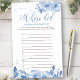 Möhippa Spelkort, personlig med namnen på bruden och trippen. Dusty Blue-blommigt med vattenfärgsblommor, bladbildning och kalligrafi av eleganten. Designad för bröllop eller möhippa fotospel "var de fanns" eller "vart de tog vägen" med numrerat linjer för att dina gäster ska få upp till 12 svar.