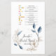 Lägg till roligten Emoji Pictionary-spel. En modern elegant i blues med beröring av guld och glitter. Här ingår samordning av baksidan av blommigten. Matchande objekt för att slutföra din händelsesamling finns i vårt Zazzle-arkiv!