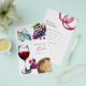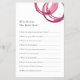 Lägg till en aning sofistikering i dina möhippor med det här charmerande trivialkortet "Do You Know the Bride". Perfekt för ett tematarrangemang i vin visar elegantens utformning druvor med vattenfärg, ett glas röd vin, ost och en skärbräda på framsidan, med roligt trivia-frågor på baksidan. Det här spelet är idealiskt för möhippa, möhippor, vino före fester, eller till och med repetitionsmiddagar. Dess utformning av snyggt och elegant parar vackert med vin-provsmakningsteman och skapar det perfekten för hennes speciella dag. Utforska matchande tema för möhippa av Victoria Grigaliunas från Do Berätta för Belle på www.zazzle.com/dotellabelle. Ordna nu för att höja möhippan med den här roligten och det minnesvärda spelet!