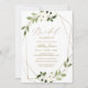 Geometric Vines Inbjudningskort för möhippa (White): Dessa boho inbjudningskort för möhippa har en geometrisk utformning av faux guld-folie överlagrad med en enkel blommigt med grön och vit vattenfärg. Ändra texten så att den blir din egen. Vill du inte ha guld? Byt bara till vilken färg du vill!