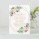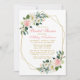 Inbjudningskort för Watercolor Rosa White and Guld Blommigt Möhippa Geometric Ram - Rosa and Guld Text - Rosa Back
