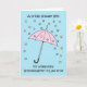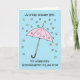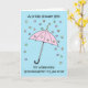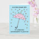Ett paraply för rosa av söt blek har duschats med pastellkonfetti färgad. Orden "En möhippa gåva till en vacker mordotter i juridik" följer med bilden.