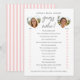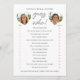 Lägg till en lekfull och minnesvärd touch till din bröllopsfest med detta charmiga "Gissa vem"-spelkort! Gästerna kommer att svara på en serie roliga frågor genom att välja om de tror att bruden eller brudgummen är det bästa valet. Perfekt för att skapa skratt och avslöja vem som verkligen känner paret bäst. Denna redigerbara mall har hjärtformade fotoframar för bruden och brudgummen, tillsammans med anpassningsbar text så att du kan anpassa brudens namn och alla fjorton frågor. Designad med elegant typografi och rena, moderna ränder, erbjuder den en fräsch, modern estetik som förhöjer varje firande. Fullt anpassningsbar och enkel att redigera, detta spelkort låter dig skapa en unik upplevelse som är skräddarsydd för ditt evenemang. Dess mångsidiga, minimalistiska stil passar vackert med en rad teman och är särskilt perfekt för vår- och sommarbröllopsfester. Tryckta färger: pastell, rosafär