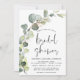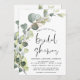 Eucalyptus Greenery Succulent Botanical Watercolor Vår bröllop Inbjudningskort för möhippa på vit bakgrund - innehåller vacker och elegant manustypografi med moderna botaniska löv och grön för att speciella Briden ska vara firande.