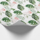 Vackert presentbyte av grönt med vattenfärg, tropiska löv och rosa. Lämpligt för bröllop eller duschpresentemballering.
