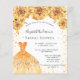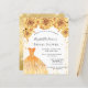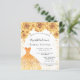 En modern, snyggt och glamorös inbjudan till en Möhippa, brunch. En vit bakgrund med faux guld glitter damm, en klänning och ro, blommigtar. Namn är skrivet med ett modernt handskript i stil. Anpassa och lägg till information om party. Baksida: Faux guld med gnistor.