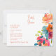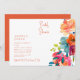 Retro Colorful Watercolor Blommigt Inbjudningskort för möhippan. Orange Text. Fast orange tillbaka.