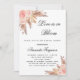 För en modern boho stil möhippa. En vit snyggt bakgrund. Dekoreras med ro guld och rosa blommigt, rosor och pampasgräs. Anpassa och lägg till information om namn och party. Text: Kärlek är i Bloom