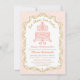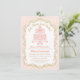 Marie Antoinette Inspired Party-inbjudan. Love birds, hjärtan, blommor och viner dekorerar denna söt tårta. Ornate fransk ram med en mjuk rosa färg damm tapet mönster fyller i detta söt kort. Underbar för födelsedag, Möhippa eller Girly Firande. Anpassa med egen text. Originalillustration med pj_design/jammydesign.