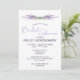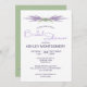 Det här lodrät har inbjudningskort för möhippan som har lavendelblomsterstjälkknippen överst och längst bak i grund. Alla duschdetaljer finns på framsidan. Anpassa texten i fälten mall eller redigera med hjälp av verktyg och markera det teckensnitt som du vill använda stil, storlekt och färg. När du byter initialer på framsidan kommer det också att ändra dem på baksidan.