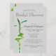 Det här lodrät-formatet inbjudningskort för möhippan ställs in över silver grått-bakgrunden. Den har ett spår av spiralformad turbulens på framsidan med uppgifter om mallen party. Det övre, lämnat hörnet på baksidan har sammanflätade bamboolstjälkar i dubblan och bambu-löv finns i det nedre hörnet på högerna. Anpassa fälten i mallen eller klicka på Anpassa för att välja ett teckensnitt stil, storlekt och färg som du vill använda.