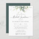 Vackra möhippans luncheon-inbjudan med vattenfärgad eukalyptus och guld löv.