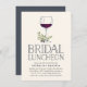 Planerar du en luncheon för möhippa med vin-teman eller vin-smakning, eller som värd för den stora händelsen på ett vineri eller en vinodling? Inbjudan med våra gäster med vår elegant, vin, provsmakande möhippa för lunchduschinbjudningar, med vin glasillustration och "möhippa luncheon" i handskriven stil-skrift. Lägg till din händelseinformation under med hjälp av den angivna mallen fält. Perfekt för möhippor i vin land, vinodling eller vinodling.
