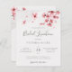 En nybörjarinbjudan till en modern blommigt-möhippa med blommar för vattenfärgskörsbär i rosa och modern kalligrafi på en handgjord papper struktur.