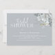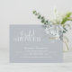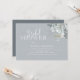 Den här designen har vattenfärgad blommigt bladdammig blått, en QR-kod med karta-anvisningar för online, möhippa, modern elegant-kalligrafi-skript typsnitt, enkel elegant botanisk grey ro, modernt, minimalistiskt typsnitt för typografi, falla sommar-vår stil, romantisk mjuk elegans förenklad, webben adress lägger till din URL, natten före