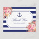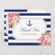 Tack för den nautiska inspirerade blommigten för möhippa som du lägger ut på kort har ett detaljerat marint blåankare med rep och en blå och vit strimlad bakgrund som ro har i skuggor av rosa, korall och persikor. På framsidan står "Tack" med ditt namn nedan för att anpassa dig. Baksidan av det här vykortet innehåller ett tackmeddelande och namnteckning att du anpassar dig. Det var en glädje att skapa för dig. Hoppas att du gillar det och önskemål på bröllop! Designad av konstnären ©Susan Coffey.