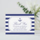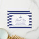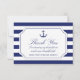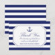 De här kustinspirerade möhipporna är tack vare att du har ett detaljerat marint blåankare med rep och en blå och vit strimlad bakgrund. Framsidan läser "Tack" med ett personlig-meddelande och ditt namn nedan. Kortets baksida är en marin blå stripe mönster. Tack till er familj och vänner i stil.