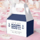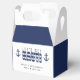 Blå och vitrandig presentask för möhippa med texten "Let's get nauti". Anpassa den med din egen text.