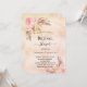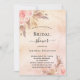 För en modern boho stil möhippa. A ro guld, rosa, skorstensbildning mot metallisk tittar bakgrund. Dekoreras med ro guld och rosa blommigt, rosor och pampasgräs. Anpassa och lägg till information om namn och party.
