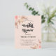För en modern boho stil möhippa. En bakgrund i ro guld. Dekoreras med ro guld och rosa blommigt, rosor, pampasgräs och Anpassa och lägg till information om namn och party. Bakåt: ro guld.