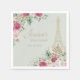 Fira din brud att vara på en Paris-temerad möhippa brunch och bubblande firande. anpassningsbar av elegantens möhippa papper napkin för Fransken/det parisiska firande. En Eiffel-torn-anläggning i guld omges av rosa och vit ros och grönt eucalyptus löv och löv. Tal från guld glitter avslutar av denna vackra inbjudan. Bakgrunden färg i mint grönt är anpassade till vilken färg du vill ha. Personligen innehåller namn på den blivande bruden och hennes duschdatum.
