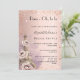 En modern, snyggt och glamorös inbjudan till ett Möhippa, paristiskt tema. En övertoningsbakgrund i ro guld med faux sparkles och Eiffel torn med några blommor. Namn är skrivet med ett modernt handskript i stil. Anpassa och lägg till information om party.