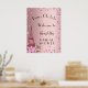 En modern, stilren och glamourös välkomstskylt för en möhippa med parisiskt tema. En rosa metallisk bakgrund med rosa glittrande hjärtan och Eiffeltornet med några blommor. Personifiera och lägg till ett namn.