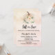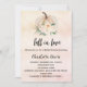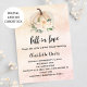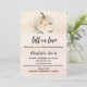 En övertoningsbakgrund i ro guld och rosa, dekorerad med en färgad och blommor. Anpassa och lägg till uppgifter om namn och party. Text: fall i kärlek