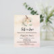 En övertoningsbakgrund i ro guld och rosa, dekorerad med en färgad och blommor. Anpassa och lägg till uppgifter om namn och party. Text: fall i kärlek 1 lakan = 1 inbjudan tryckt kant till kant.