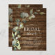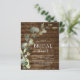 Budgeten Eucalyptus Greenery Rustic Wood Botanical Watercolor Vår bröllop Inbjudningskort för möhippa på vit bakgrund - innehåller vacker och elegant manustypografi med modernt botaniskt löv och grön för att den speciella bron ska vara firande.
