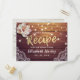 Möhippa Recept Card-mallar - Faux Gold Foil Script Elegant Blommigt och String Ljus med Snöre Dekorationer på Rustic Wood Background. En Perfekt för din stora dag! Alla textstorlekar i Stil, Färg kan anpassas efter dina behov.