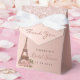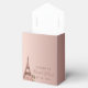 För en elegant, klassisk, glamorös och giftig stil-möhippa. En övertoningsbakgrund i ro guld, som är korerad med Eiffel Torn i Paris. Med texten: Möhippa och Tack skrivet med ett modernt mörk ro-handskript med färgaden stil. Mall för bridens namn och datum.