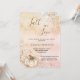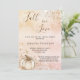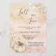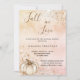 En modern elegant och möhippa. En ro guld och rosa Faux metallisk tittar bakgrund som dekorerats med faux guld och silver glitter damm och en rustik vit pumpa. Anpassa och lägg till information om namn och party. Svart färgad brev. Med texten: Fall i Kärlek