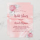 Elegant, klassisk, glamorös och giftig stil inbjudningskort för möhippan. rosa, silke tittar bakgrund, rosa och vita blommigtar. Anpassa och lägg till information om namn och party.