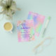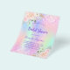 Observera att inbjudan är papper och mycket tunn. Kuvert ingår inte. Om du vill ha mer omfattande inbjudningar (samma design) kan du besöka vår butik. En regnbåge, holografisk färgad i lila, rosa, myntgrönt, ro guld. Dekorerad med rosa faux glitter, gnistor. Anpassa och lägg till information om namn och party. Namn är skrivet med ett handskript stil, lila färgad brev.