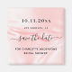Ett giftigt och trendig Spara datum magneter för en Möhippa. En rosa, silke bakgrund. Anpassa och lägg till ett datum och namn. Svart färgad brev. Texten: Spara datumet skrivs med ett stort trendig-handskript i stil.