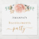 För en möhippa med tjejerna. En chic vit bakgrund. Dekorerad med en akvarellmålad rose gold, rosafärgad blomma, blomma (ros) och gröna akvarellmålade eukalyptusblad, kvistar, grönska och en falsk guld kvist. Personifiera och lägg till namnet på bruden. Med texten: Möhippa. Svarta och gyllene bokstäver.