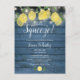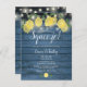 Den här snyggten botaniska inbjudningskort för möhippan kan vara personlig med din speciella händelseinformation och ha citrongrönt och söt ljus på en blå, rustisk träbakgrund. Designad av Thisisnotme©