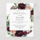 ** SATIN PAPPER ÄR PAPPERT. UPPGRADERA PAPPRA FÖR EN TEKER-PAPPER. HAR ETT ALTERNATIV FÖR ENVELOPES. *** Spara pengar på inbjudningar med denna mindre inbjudan som har ett alternativ för kuvert. Hämta redot för gästerna till fantastisk med din Mörk Burgundy & Rosa Blommigt inbjudningskort för möhippan. Vill du ha en större version? Ta en titt i vår bröllop-samling efter kort. https://www.zazzle.com/collections/dark_burgundy_light_blush_pink_floral_invitation-119959384305197057?rf=238937196885903396