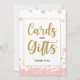 Den här moderna möhippan "Cards and Gifts" i blommigten har en rosa blommigt med guldfärgat glitter stänk. Texten skrivs i en blandning av ett lekfullt kalligrafteckensnitt och ett modernt sans-teckensnitt.