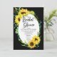 Klassskt och stilfullt moderna solblommor och eukalyptus grey ram utformar "Möhippa" på en redigerbar svart bakgrund. Baksidan har en koordinerande solrosbukett även på en redigerbar svart bakgrund.