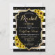 Inbjudningskort för möhippan. Elegant, blommigt med solblommor, faux glitter guld och svart och vitt rand. Innehåller modernt typsnitt och konfiguration för skript. Perfekt för en snyggt möhippa. Anpassa med din egen information.