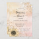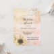 En modern elegant och möhippa. Ro guld och rosans bakgrund dekorerade med faux guld och silver glitter och en rustik solros. Anpassa och lägg till information om namn och party. Svart färgad brev.