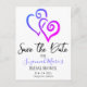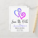 Skicka meddelandet "Spara datum" för en möhippa eller annan speciell händelse med länkad rosa och blått hjärta på båda sidor. Anpassa texterna fram och tillbaka i mallen eller klicka på Anpassa för att välja det teckensnitt stil, storleka och färg som du vill ha.