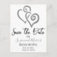 Skicka meddelandet "Spara datum" för en möhippa eller annan speciell händelse med länkad grått hjärtkonst på båda sidor. Anpassa texterna fram och tillbaka i mallen eller klicka på Anpassa för att välja det teckensnitt stil, storleka och färg som du vill ha.